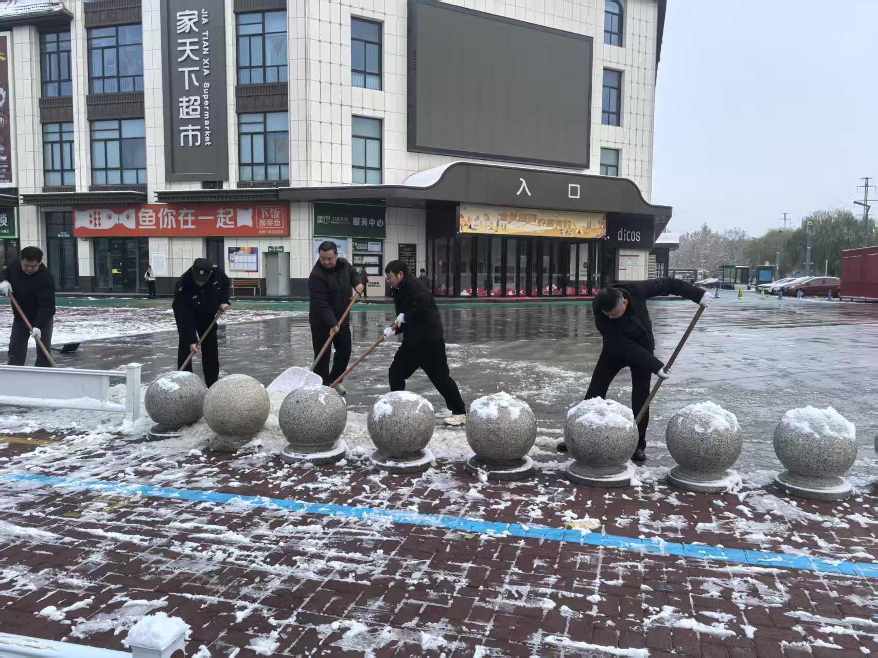 2025年12月13日早上,商貿(mào)公司在購物中心開店前,組織全體人員開展積雪清掃行動(dòng)。保障商戶經(jīng)營與顧客購物的安全出行,全面清理了購物中心出入口、主通道及周邊區(qū)域的積雪積冰,有效消除了人員通行的安全隱患,為購物中心平穩(wěn)運(yùn)營筑牢安全防線。