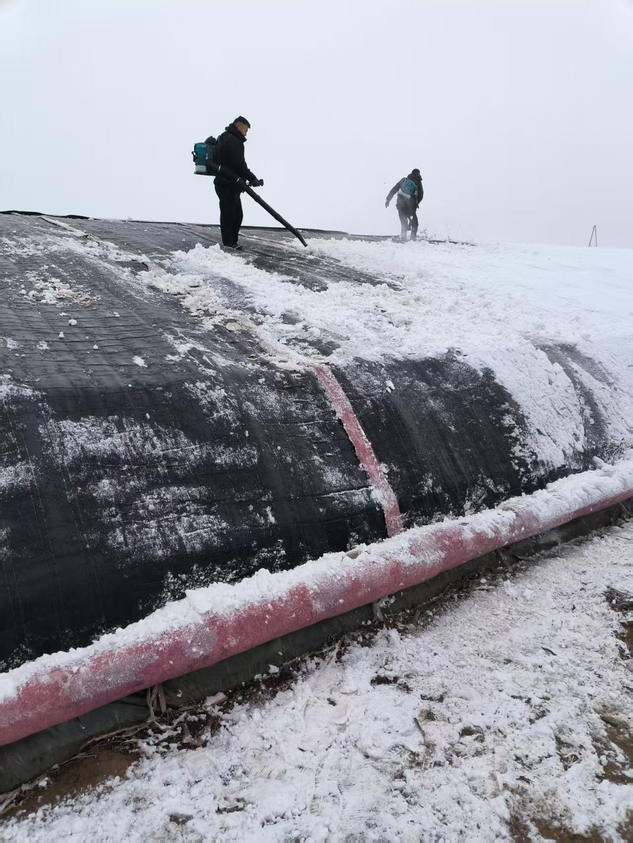 12月13日,桃苑文旅公司進行大棚除雪工作。